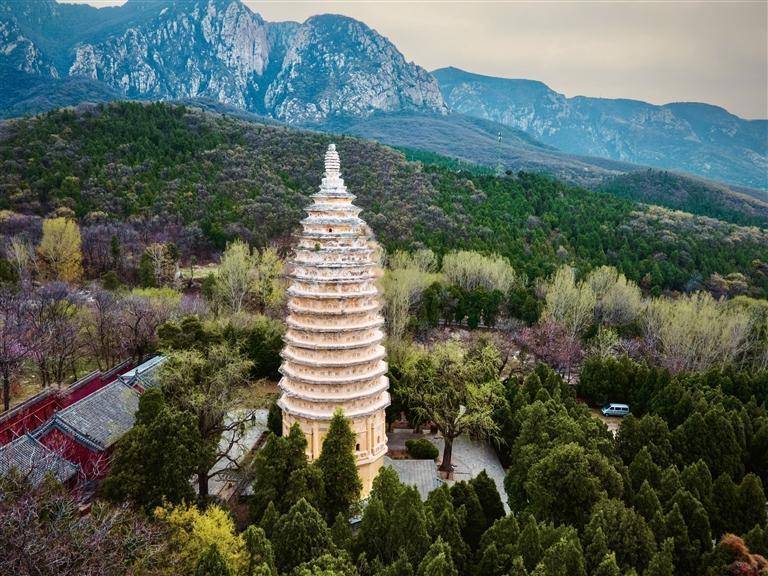 图② 嵩岳寺塔位于登封市嵩岳寺内,是中国现存最早的砖塔。 本报记者 邓放 摄
